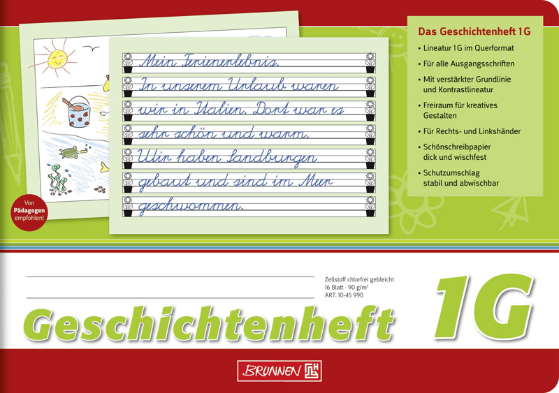 Brunnen Geschichtenheft A5 quer Lineatur 1G 16 Blatt