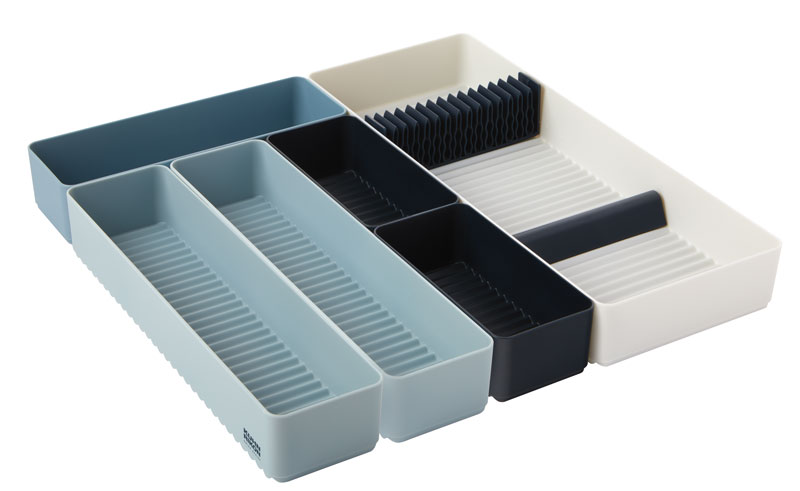 - Im Set enthalten: 1 Messerhalter, 2 Schubladen-Organizer gross, 1 Schubladen-Organizer mittel, 2 Schubladen-Organizer klein