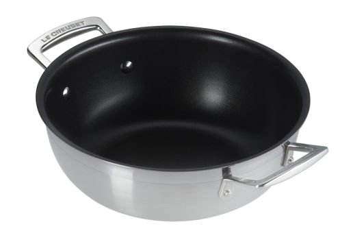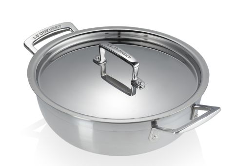 Das hochwertige 3-ply Mehrschichtmaterial zeichnet sich durch eine hervorragende Wärmeleitfähigkeit und -speicherung sowie gleichmäßige Wärmeverteilung aus. Zeit- und energiesparend einsetzbar, eignet sie sich für alle Herdarten, inklusive Induktion. Die 3-ply Pfannen ermöglichen fettarmes und schonendes Kochen und Garen. Die Profipfanne besitzt abgerundete Ecken und schräge Seitenwände, die das Umrühren z.B. Risotto erleichtern.