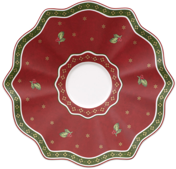 Wenn es nach Plätzchen und Tannenzweigen durftet und die Stimmung besinnlich wird, dann hat die Adventszeit begonnen. Mitdieser Kaffeeuntertasse empfangen Sie Ihre Gäste in der Vorweihnachtszeit mit einer besonders geschmackvoll gedeckten Kaffeetafel. Das Dekor im Stil traditioneller Weihnachtsteller erfüllt den Raum mit einem Hauch Nostalgie. Ein filigraner Rand umfasst den roten Teller mit den kleinen Zweig-Motiven und rundet das formvollendete Porzellanstück harmonisch ab. Laden Sie Ihre Lieben zum Beisammensein ein und servieren Sie Kaffee oder Tee an der festlich gedeckten Tafel. Passend zu dieser hochwertigen Untertasse finden Sie wunderschöne Tassen und Dekorstücke aus der Toy's Delight Kollektion.