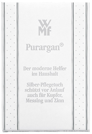 Seit über 160 Jahren lebt die Marke WMF eine starke Tradition. Sie ist international präsent, setzt Maßstäbe und wirkt mit zahlreichen Innovationen im Markt als wichtiger Impulsgeber. Sie begleitet Genießer durch den Alltag mit qualitativ hochwertigen, funktionalen und formschönen Produkten rund um Tisch und Küche, die einem hohen Designanspruch genügen. Für die schnelle Pflege zwischendurch eignet sich ein Silberpflegetuch ganz besonders. Dieses Tuch pflegt Silber, Kupfer, Messing und Zinn. Nach der Pflege ist der Artikel mit einem leichten Anlaufschutz versehen.