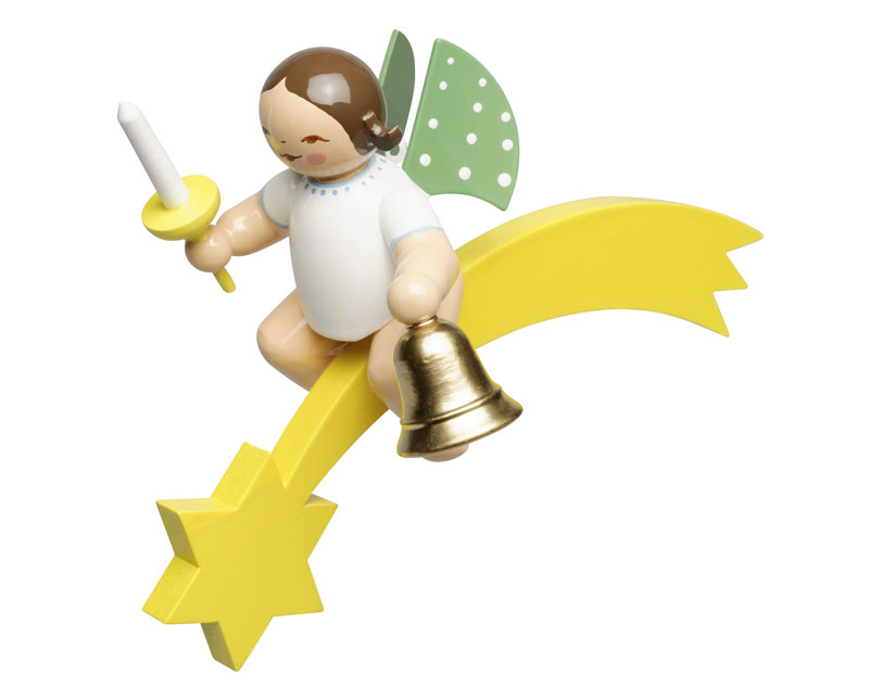 Bitte beachten Sie, dass es durch die Bemalung von Hand zu kleinen Unterschieden zwischen den einzelnen Figuren kommen kann. Diesen Engel gibt es nur mit dunklen Haaren, da er sich so optimal von seinem gelben Komet abhebt!