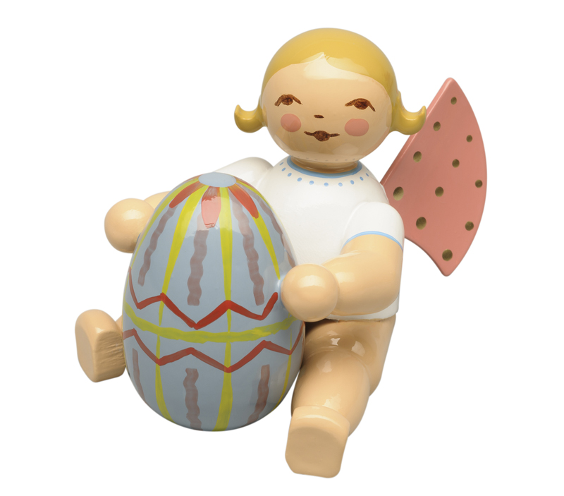 Wendt & Kühn Engel mit blauem Osterei sitzend