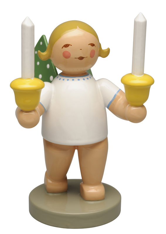 Die Grünhainichener Engel aus dem Hause WENDT & KÜHN verzaubern mit ihrer Gestalt, ihrem Ausdruck und ihrem Charme. Ihr Markenzeichen sind die elf weißen Punkte auf ihren grünen Flügeln. Die Engel wie der ENGEL MIT ZWEI KERZEN erhalten bei Sammlern vor allem in der Weihnachtszeit ihre große Bühne.