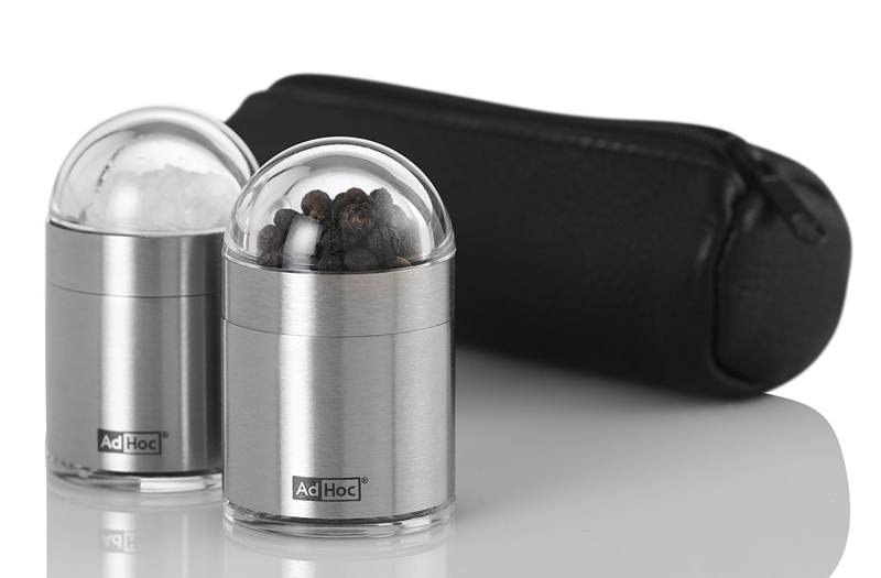 Das REKNICK TO GO-Set von AdHoc ist so abgestimmt, dass es mit ins Restaurant oder auf Reisen genommen werden kann. Die Mühlen sind klein und handlich und dank des mitgelieferten Lederbags jederzeit zum mitnehmen griffbereit.