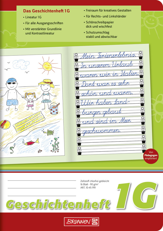 Brunnen Geschichtenheft A5 Lineatur 1G 16 Blatt