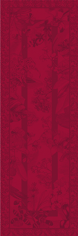 Garnier-Thiebaut Tischläufer Orchidees Bordeaux Coton 180x60 cm cm Gs