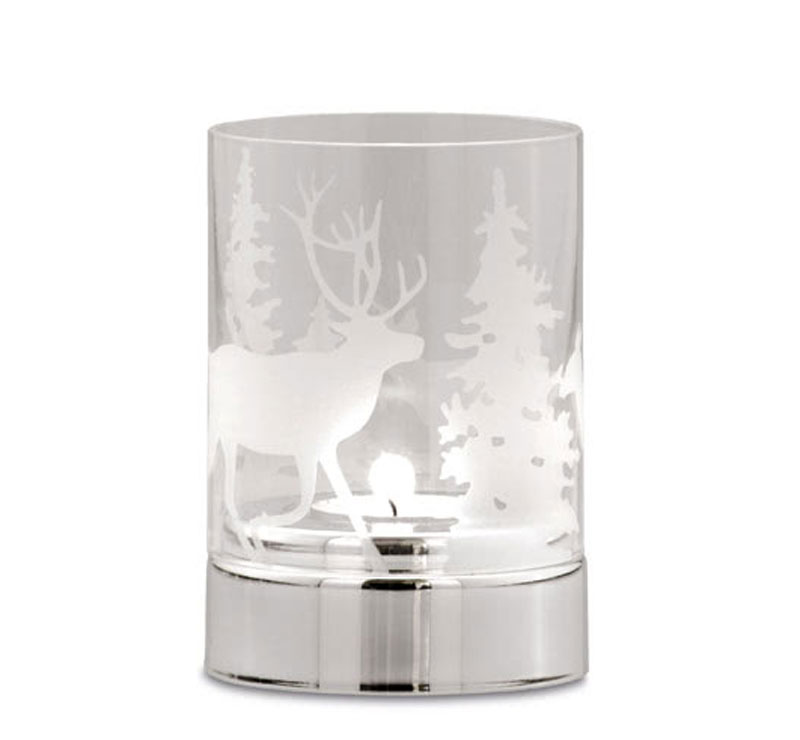 Hermann Bauer jun. Teelichthalter Tannenbaum/Rentier, klares Glas versilbert