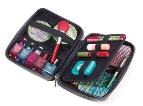 3 Innenfächer, 6 Elastikband-Schlaufen, Trennwand (innen), Kunstleder/Samt, grau/schwarz